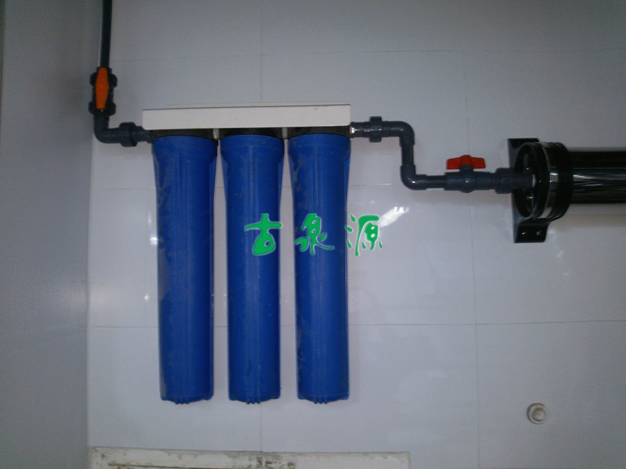 項目因為是家用,所以安裝快速簡單,從送貨到驗收一共只用去了半天的時間。前置預(yù)處理我們采用了三個單級過濾器的串聯(lián),分別應(yīng)用了5μmPP棉、顆?;钚蕴?、1μmPP棉,將水中的大于1μm的雜質(zhì)顆粒等除掉,并且可以有效的保護超濾膜的使用壽命。